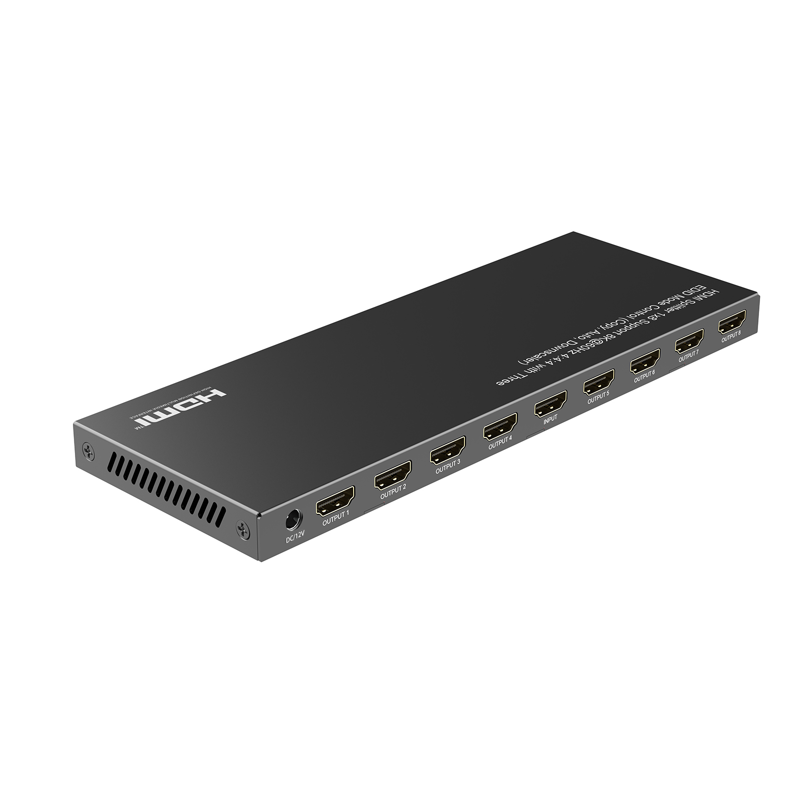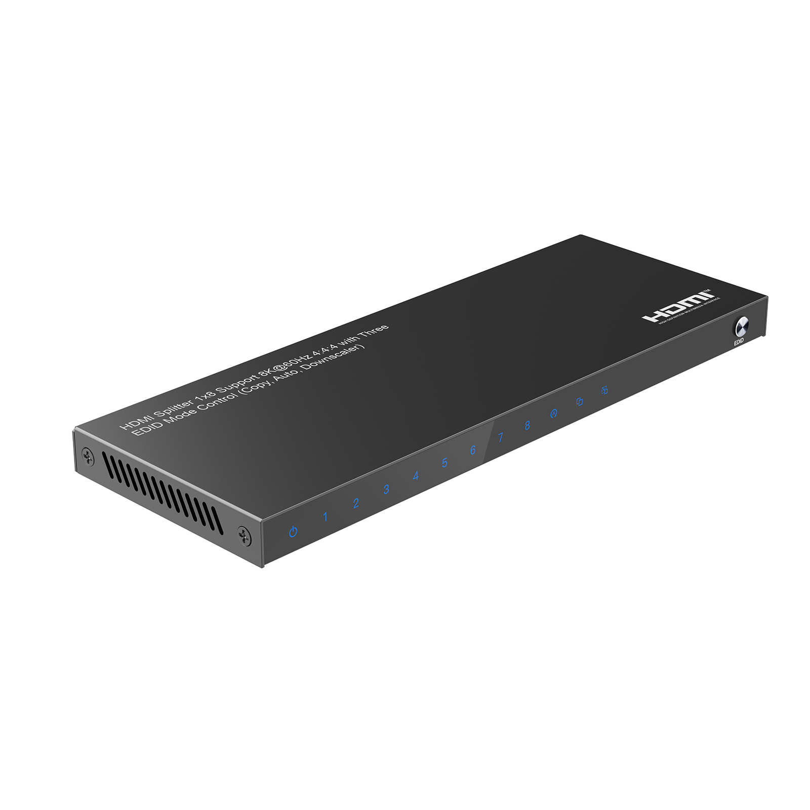 The HDMI™ 8K splitter 1×8 lets you share eight HDMI™ displays or projectors with an HDMI-enabled audio / video source device. With support for Ultra HD (8K@60Hz) the HDMI™ splitter ensures astonishing picture quality, four times the resolution of UHD 4K@60 Hz. The 8K splitter is also backward compatible with previous HDMI™ revisions, supporting 4K/1080p / 720p HDMI™ video resolution devices. Even if you don’t require 8K video today, the HDMI™ 8K Splitter 1×8 ensures you’ll be ready to take advantage of tomorrow’s display technology. It features three different EDID modes auto/copy/downscaler for meet needs of different display occasion.