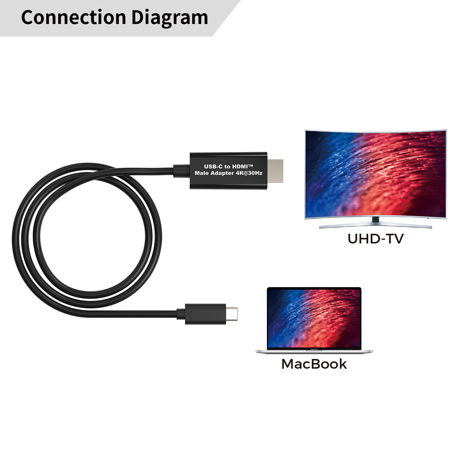 This USB 3.1 Type-C™ to HDMI™ male adapter 4K@30Hz lets you output HDMI™ video and audio from a USB 3.1 Type-C™ device such as a MacBook, MacBook Pro or ChromeBook Pixel™ laptop. It lets you utilize the versatile USB 3.1 Type-C™ port on your portable device. USB 3.1 Type-C™ is a reversible connector, so it doesn’t matter which way you plug it in, the adapter will always work, saving you the hassle and embarrassment of fiddling with your device when you’re trying to deliver a presentation.