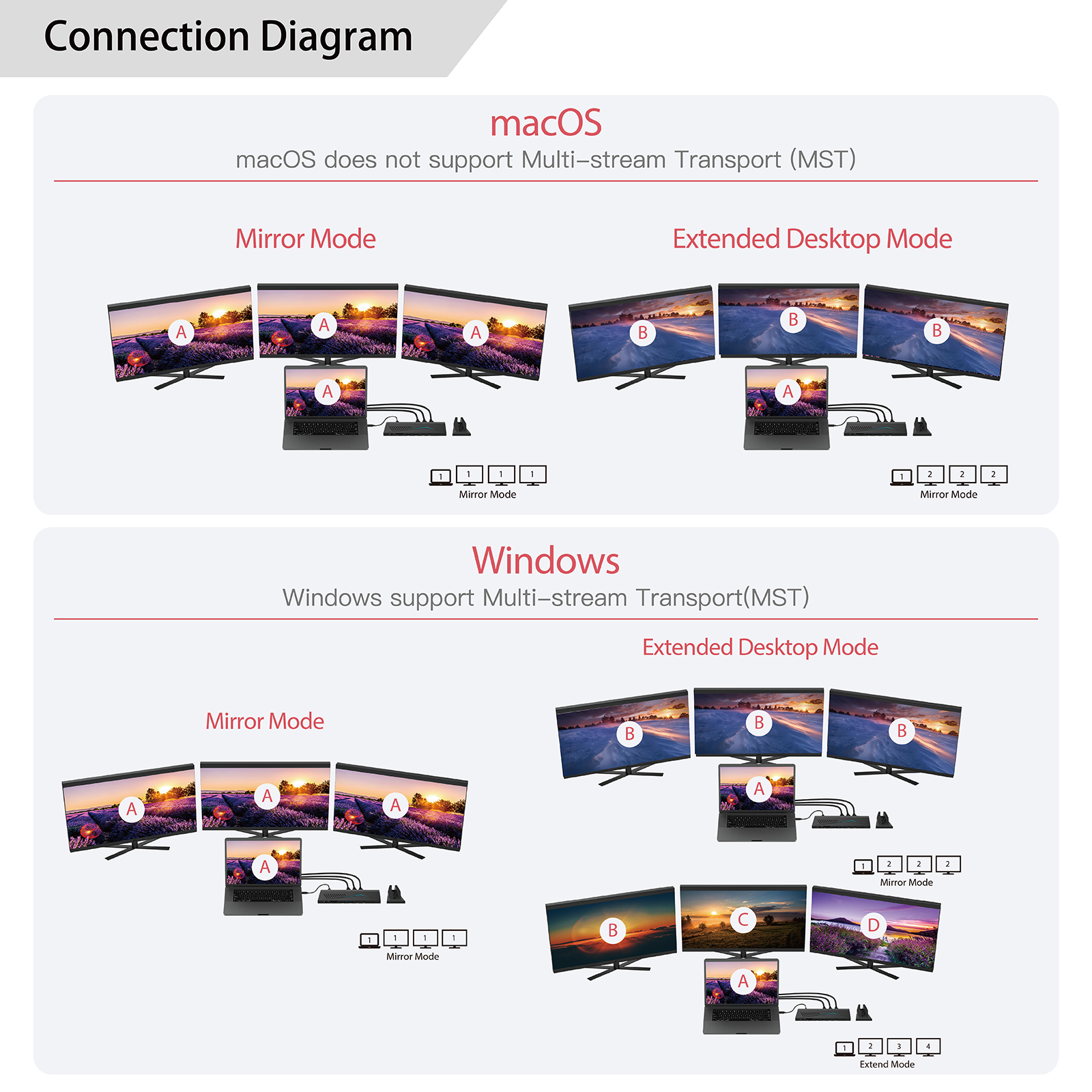 - Allows you to extend your PC screen to multiple displays, only supporting up to 3 different displays on Windows and 3 same displays on Mac OS.